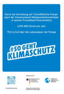 Die in die Jahre gekommene Umwälzpumpe des Außenbeckens ist gegen eine neue hocheffiziente Umwälzpumpe ausgetauscht werden. Durch den Austausch kann eine erhebliche Menge an Strom eingespart und somit der C02 Ausstoß verringert werden. Die jährliche Stromeinsparung liegt bei etwa 6.396 kWh, was eine Reduzierung des Stromverbrauchs von rund 15 % bedeutet. Der C02 Ausstoß wird durch die Maßnahme um etwa 75,5 Tonnen, bezogen auf die Lebenszeit der Pumpe, reduziert. Allein schon aus diesen Gründen war der Austausch der Umwälzpumpe sinnvoll. Zudem ist die neue Pumpe technisch auf dem neusten Stand, 100 % korrosionsfest und bietet so eine hohe Betriebssicherheit.