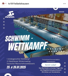 Am letzten Wochenende im Januar gehört das Freizeitbad „Panoramablick“ wieder den Wettkampf-Schwimmern – diesmal an zwei Tagen: Am Samstag (25. Januar) steigt das nunmehr vierte Eibelshäuser Wintermeeting, zu dem der